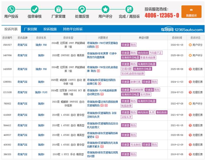 奇瑞瑞虎8 PRO行驶变速箱自动跳挡