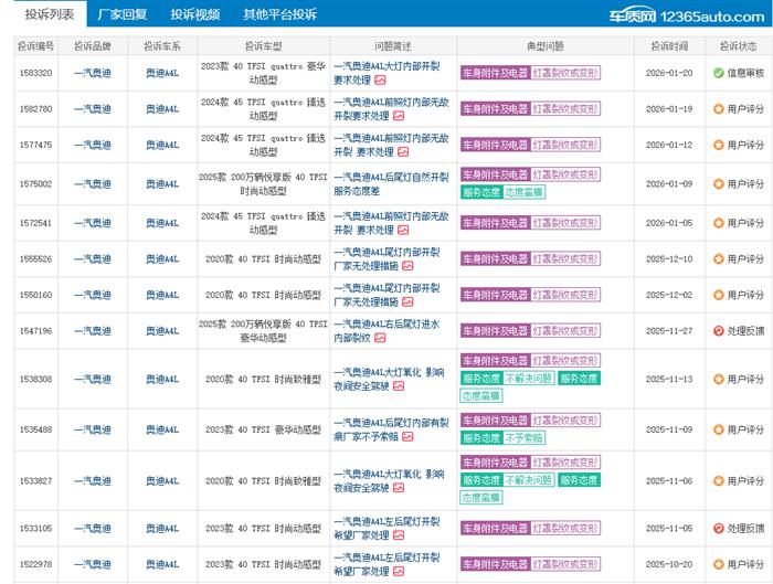汽车两个前大灯内部开裂,到4s店检查,确定不是外力引起的,反馈给厂家说是贴车衣或使用了刺激性药水不给质保。车质网上关于这车车灯的投诉很多,明显属于产品质量问题。