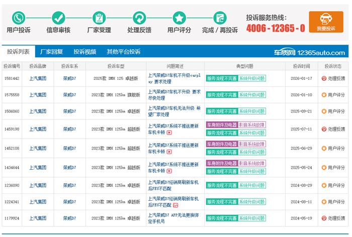 上汽荣威D7车机无互联,系统从未OTA升级。 同为上汽,硬件一致的名爵7已推送该功能,D7却被区别对待。 有一样的车主朋友吗?最近车质网上不少投诉这问题的!