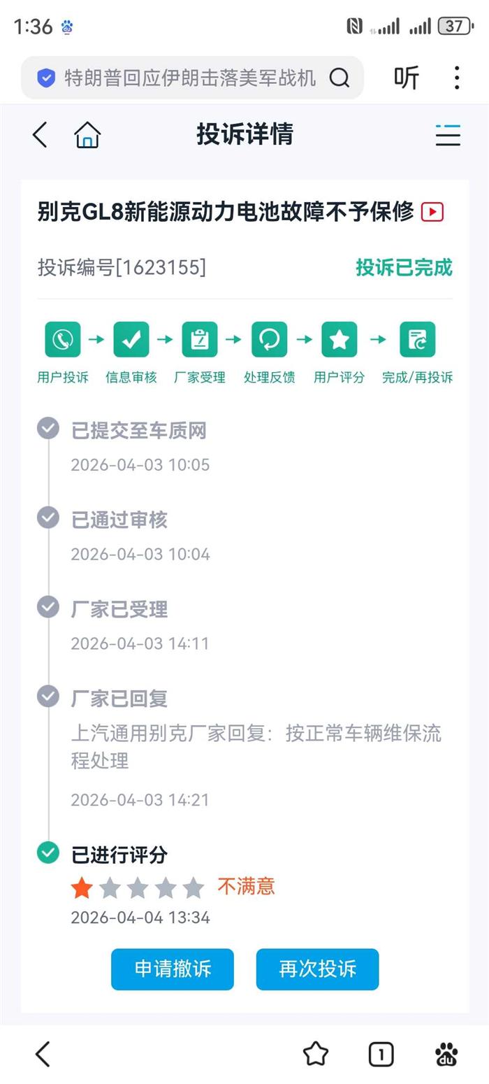 我与2024年9月30购买的GL8插混陆尊新能源车辆,至25年12月份都在正常使用,由于本人出国1个月左右,但是公司人员定时使用车辆,使用时间较少了,与2026年1月25日车辆无法启动,车辆屏幕显示动力不力,但电脑屏幕显示动力电池电量百分百满电状态,救援至柳州市桂海通达销售服务有限公司(别克4S店)初期检测动力电池也是百分百满电状态,没有问题,没有检测出无法启动问题,过几天后他们说求助总公司的技术检测是动力电池损坏,是长时间不充电造成的,不给质保让客户自费更换或者维修,也没出示相关的书面鉴定报告,也拿不出动力电池那个部位损坏,是不是电池锁了,就先把责任推给消费者说久放不充电造成的,我的车辆一直显示百分百电量为何充电。别克GL8陆尊新能源这么大的企业不严谨,任何一家新能源车辆也没见过放一段时间不充电,电脑显示电量百分百,就无法启动车辆,还不给质保,购车时候别克经销商也没告知新能源陆尊GL8车辆不按时充电,就不质保,陆尊新能源车辆是油电混合动力嫌充电麻烦跑短途一直用油电脑显示屏电池一直都是百分百电量,消费者也不是汽车技术工怎么能能知道电脑显示满电也得充电,不充电就不质保,怎么能放一段时间不开,就不给质保。如果说别克新能源陆尊GL8车辆放一段时间动力电池就损坏而且不给保修范围,没一个消费者再敢购买了,之后多次跟别克4S店厂家400电话进行沟通,来回扯皮,别克陆尊新能源车辆电池包终生质保就是骗局,随便找点理由就让消费者自己花钱换电池包总成需要4万元,车在4S店放了2个月扯皮了两个月一个领导层都没出来解决问题来回扯皮我实在没办法,我就在外面随便找一家新能源电池维修厂家去修理,总花费5080元就修好了,而且电池包并没有损坏没有更换任何零件,人工补电后就可以使用了,之后厂家委托4S点告知我把电池维修费用给我,把贴子删掉,我没有同意,我想维权,我感觉别克插混车辆厂家有点糊弄消费者行为,电池包更换需要4万,车辆停放久了电脑显示满电状态下不给质保,消费者自己在外面花几千就能修好,他又说外面拆了电池包维修后,厂家以后不管什么原因都不质保了,霸王条款坑消费者,希望消费者擦亮眼睛,帮我一起维权,也希望相关监督部门领导给消费者做主。
