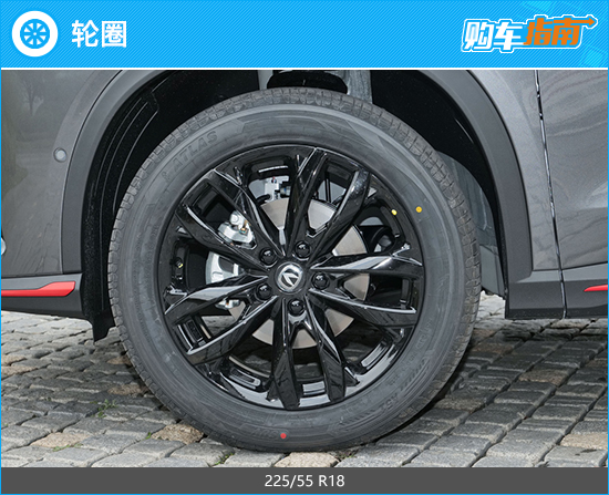 轮圈方面,新车的选择性并不多,全系仅提供一款黑化双五辐式轮圈,视觉效果还算运动,轮胎规格均为225/55 R18。