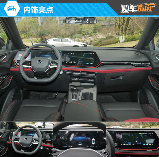 内饰方面,新车整体设计与老款长安欧尚X5 PLUS保持一致,均采用了塑光设计美学理念打造,突出车内立体感。同时,车内还采用了大量红色元素,为整车增添些许运动气息。此外,双联屏的设计也迎合了当下设计潮流,充满科技感。