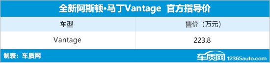 4月19日,全新阿斯顿·马丁Vantage在国内正式上市,售价223.8万元,这也是新车在国内的首次亮相。新车主要针对底盘和动力总成进行了优化升级,仅需3.5s即可“破百”。按计划,新车将于年内开始交付。