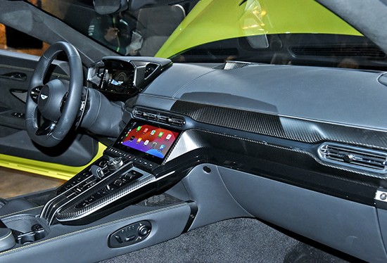 内饰布局与DB12相似度较高,颇为干净利落,充满性能车该有的味道。全液晶仪表和中控屏的尺寸均为10.25英寸,内置阿斯顿·马丁新一代信息娱乐系统,不仅配备单指和多指手势控制功能,并且还支持CarPlay以及安卓设备互联。