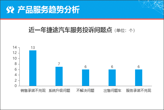 从服务投诉问题点来看,“销售承诺不兑现”成为车主对于捷途品牌抱怨相对较多的服务问题。通过进一步分析可知,这类服务问题主要集中在捷途旅行者车型。