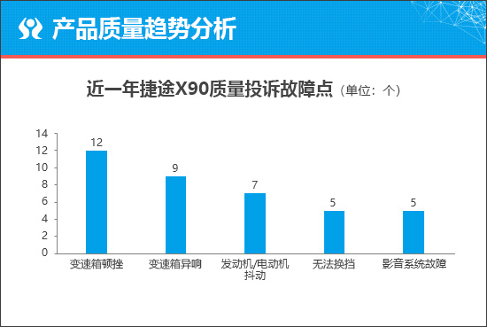 据车质网数据显示,捷途X90近一年来的投诉主要集中在“变速箱顿挫”、“变速箱异响”等,但投诉故障数相对较低。由于捷途X90 PRO是在捷途X90基础上打造而来的车型,车身大部分零件均与捷途X90共享,因此有可能还会出现上述问题。但实际情况如何,还有待使用一段时间后才能有定论。