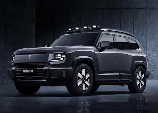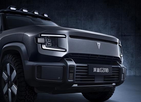外观方面,深蓝G318采用硬派越野的造型风格,官方命名为“星际战舰”,彰显其硬派SUV的定位。车头采用封闭式格栅设计,长条形装饰板与C字形大灯相贯通,视觉整体感较强。前包围造型较为厚重,搭配车顶探照灯以及外挂式备胎,越野气息十足。