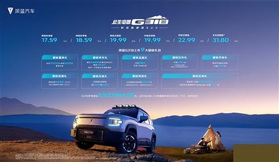 6月13日,深蓝汽车旗下中大型SUV——深蓝G318正式上市。新车共推出6款车型,包括两驱/四驱车型,售价区间为17.59-31.80万元。该车采用承载式车身、增程动力、全时四驱系统和双重差速锁。此外,车辆还将提供丰富的原厂拓展件,包括行李架、射灯、电动踏板、备胎等。