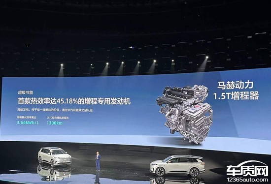 动力方面,新车搭载由1.5T发动机+电动机组成的增程式动力系统,发动机最大功率110kW,单电机版本电动机功率为200kW,双电机版电动机总功率360kW,配备43kWh三元锂电池组,CLTC纯电续航里程分别为318km和259km,CLTC综合续航里程为1458km和1357km,百公里馈电最低油耗为6.19L。