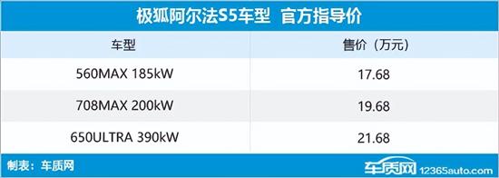 动力方面,阿尔法S5提供单电机和双电机两种配置。其中,单电机车型电动机总功率分别为185kW和200kW,总扭矩为360N·m,CLTC纯电续航里程分别为560km和708km;双电机车型电动机总功率390kW,总扭矩690N·m,CLTC纯电续航里程650km。