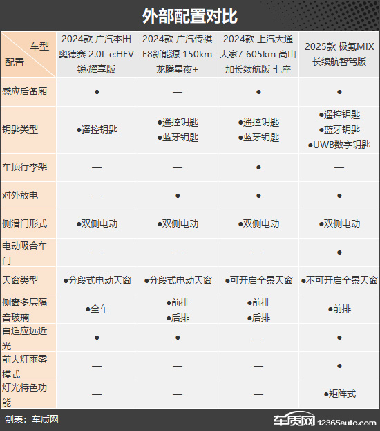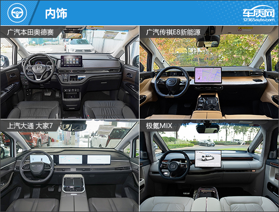 内饰方面,四款车型都采用了简洁化的设计语言,除了广汽本田奥德赛之外,其余三款车型都取消了物理按键,取而代之的是通过语音和屏幕来进行功能操作。值得一提的是,四款车型中,三款都采用了怀挡换挡方式,广汽本田奥德赛虽然不是怀挡设计,但也将按钮式换挡设计在了中控台上,这样的设计可以为前排留出更多的储物空间。此外,极氪MIX的中控大屏还支持左右调节角度,可以更便于副驾驶乘客使用屏幕。