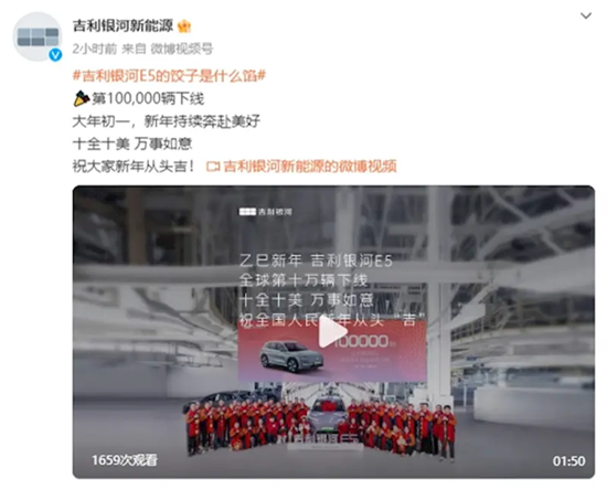 吉利银河E5第10万辆正式下线,新车共推出5款车型,限时售价10.98万元起。
