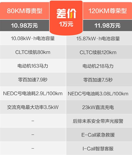 从图上来看,1万元的差价可以换来更大的铝合金轮圈、全景天窗、以及LED照明灯、主驾驶6向电动调节。更大的轮圈让外观看起来更帅,LED照明灯让车辆的氛围一下拉满。电动调节的座椅可以提升驾驶舒适度,全景天窗更是可以让车内更加的通透,提升驾驶愉悦感。另外,80KM尊贵型自动空调多了温度分区控制,可以让车内的每一个乘员都有适合自己的温度,进一步提升舒适感。因此我建议大家可以多考虑一下80KM尊贵型。