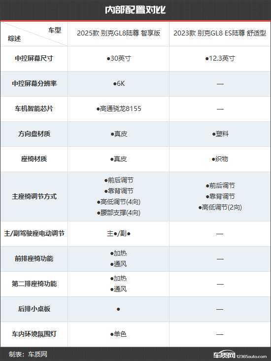 通过此次对比可以看出,2025款别克GL8陆尊真正做到了“加量不加价”。指导价比老款车型更低,产品力却有着质的提升。第一、二排的座椅加热/通风功能,满足了MPV用户对舒适度的追求。30英寸的6K中控大屏带来了不一样的智能化体验。同时,丰富的安全配置,也让车内驾乘人员在出行时更加安心。还有设计上的与时俱进,让大家看到了别克GL8陆尊王者归来的决心。如果您近期正在考虑购买一款中高端MPV车型,那么2025款别克GL8陆尊值得您重点关注。