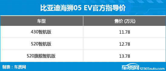 3月25日,比亚迪海狮05 EV在深圳正式上市,新车共推出3款车型,售价区间为11.78-13.78万元。同时,官方还推出新享宠粉礼、新享无忧礼、新享充电礼等五重购车权益。
