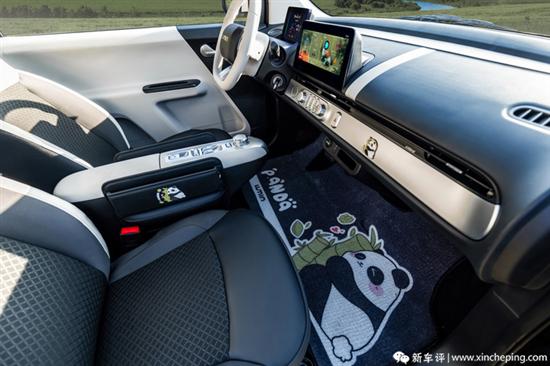内饰同样延续了熊猫主题设计,采用黑白配色,配备熊猫印花头枕和定制脚垫。配置上较标准版有所升级,新增电子手刹、后盘式制动器、升级版中央扶手箱(提供更多收纳空间)以及皮质拼接座椅等。