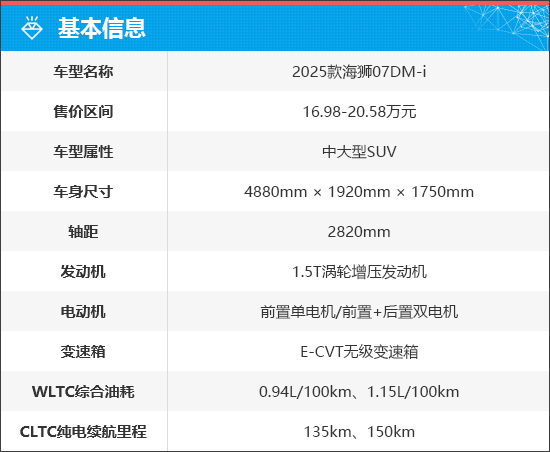 比亚迪海狮07DM-i共推出3款车型,售价区间为16.98-20.58万元,全系均可选装灵鸢比亚迪智能车载无人机系统。此外,现订购海狮07DM-i的用户可享奢享焕新礼、奢享充电礼、奢享无忧礼、奢享互联礼及奢享贵宾礼五大购车好礼,涵盖0首付0利息、至高26000元置换补贴、3年免费取送车、3年免费泊车服务、3年免费出行替代服务等多重购车权益(详情请咨询当地经销商)。