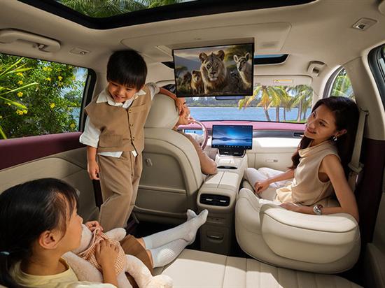 内饰则提供丹霞映雪、日落秋林、夜隐千峰 3 种配色方案,从材质到布局都紧扣 “家” 的主题:软质包裹覆盖中控台,细节处的缝线工艺提升豪华感;15.6 英寸 2.5K 后排吸顶屏支持多方式开启,配合前后屏 “三指飞屏” 功能,可轻松传递导航或影音内容;航空小桌板承重达 10kg,既是孩子的移动餐桌,也是家长的临时办公台,真正实现 “一板百用”。