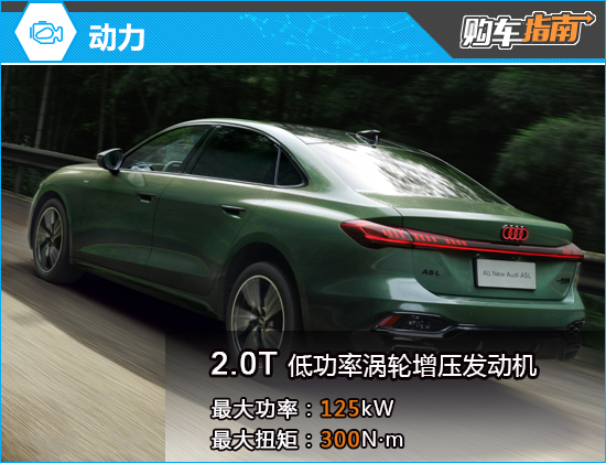 动力系统方面,2026款一汽奥迪A5L搭载2.0T涡轮增压发动机,分为两种调校。低功率版发动机最大功率125kW,最大扭矩300N·m;高功率版发动机最大功率150kW,最大扭矩340N·m。全系均匹配7速湿式双离合变速箱,顶配车型还提供了quattro智能四驱系统。