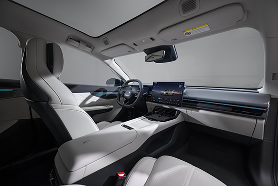 内饰方面整体延续了现款布局,变化并不显著。三辐式平底方向盘前方配备全液晶仪表,中控区域搭载大尺寸悬浮式屏幕,科技氛围依旧浓厚。配置方面,新车将天窗升级为全景天幕,拥有出色的透光性,此外,其还搭载了23扬声器哈曼卡顿音响,视听效果更为优异。