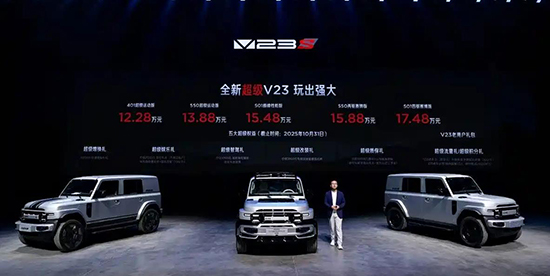 9月21日, iCAR超级V23正式上市,共推出5款车型,包括普通版(2款)、S版(1款)、赛博版(2款),新车售价区间12.28-17.48万元。其中,备受期待的性能车型iCAR超级V23S售价为15.48万元。