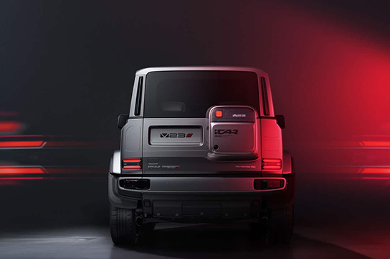车身侧面,iCAR超级V23S在前翼子板处加入了S红色标识,还配备有外扩轮眉和隐藏式门把手。车辆方面,V23S仅在尾标方面与普通版车型有所区分,配备了外挂式的“小书包”,增加少量的储物空间。新车最小离地间隙210mm,最大涉水深度600mm。车型尺寸方面,新车长宽高分别为4220mm*1915mm*1845mm,轴距2735mm。