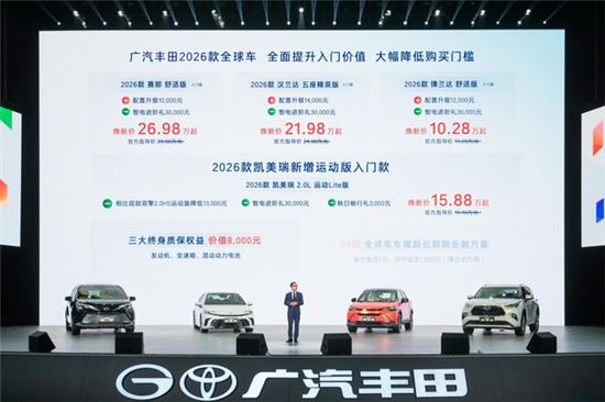 9月23日,广汽丰田举办了2026款丰田全球车发布会,正式推出赛那、汉兰达、凯美瑞、锋兰达四款全球车的焕新车型,旨在为燃油车用户带来前所未有的价值体验。