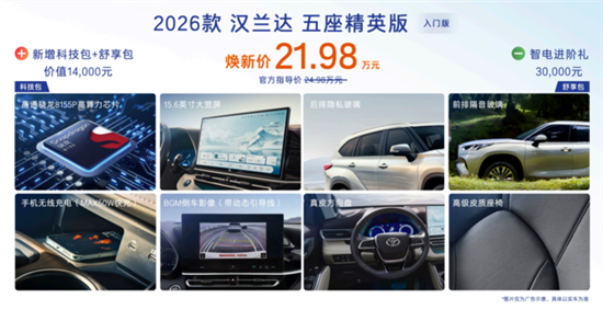 以21.98万元起售的2026款汉兰达,实现“入门即超配”。