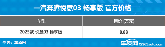 9月23日,一汽奔腾悦意03畅享版正式上市,共推出1款车型,官方售价为8.88万元,同时,新车提供整车及三电终身质保,私家车主购买均可享受不限里程、无任何捆绑条件、3 年内自由过户的质保承诺。