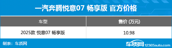 9月23日,一汽奔腾悦意07畅享版正式上市,共推出1款车型,官方售价为10.98万元。新车是中国一汽BMP超级电混首款车型,采用了插混动力,CLTC综合续航里程可达1555km。