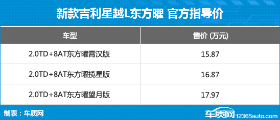动力方面,新款吉利星瑞东方曜提供两套方案,1.5T涡轮增压发动机最大功率133kW,峰值扭矩290N·m,匹配7速双离合变速箱;2.0T涡轮增压发动机最大功率200kW,峰值扭矩400N·m,匹配爱信8速手自一体变速箱。