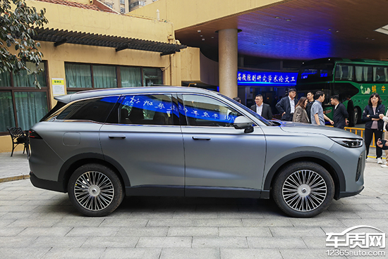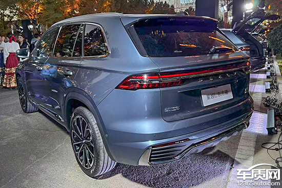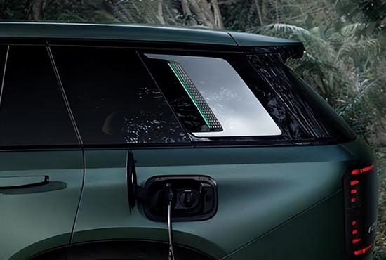 车尾造型饱满厚重,贯穿式尾灯与大倾角后风挡相得益彰,动感十足。其中,纯电版尾门右侧加入EV标识,而增程版则保持简洁设计。