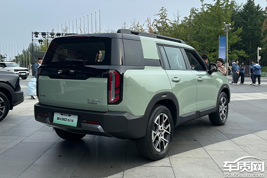 车身侧面保持硬朗的“方盒子”造型,搭配大面积黑色护板与包围,进一步凸显越野属性。尾部造型整体简洁,竖直尾灯组与黑色后包围及银色饰件相呼应,视觉层次感较强。