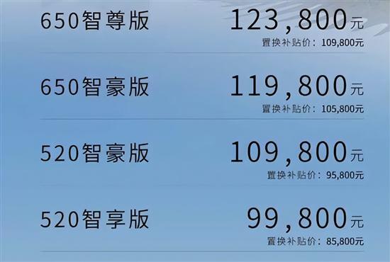 动力部分,新车采用同级领先的碳化硅电驱,电动机总功率分别为150kW、165kW,总扭矩均为240N·m。同时,新车共有55.1kWh电池包和68.1kWh电池包,均来自宁德时代品牌,CLTC纯电续航里程分别为520km、650km。