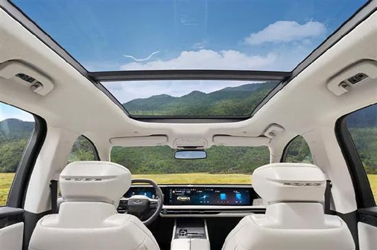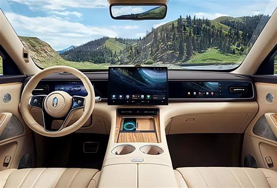 内饰部分采用“T”字形布局,细节上有很多中国风设计,如九色神鹿等纹饰处理,十分精致。用料采用了大面积皮质包裹,质地柔软细腻,能够提供舒适的乘坐体验。
