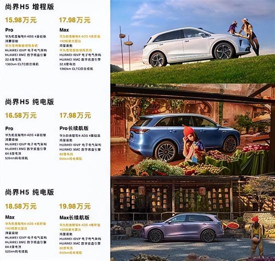 2025年9月23日,尚界H5正式上市,新车共推出6款配置,售价区间为15.98-19.98万元。尚界H5是鸿蒙智行“第五界”——尚界旗下的首款车型,定位为中型SUV,动力方面提供纯电动和增程式两种选择。
