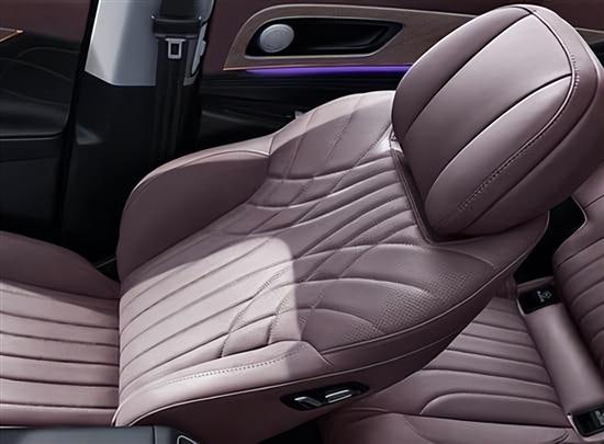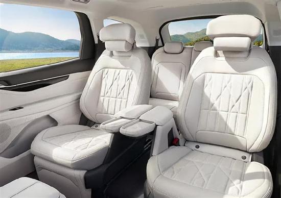 内饰方面,新车使用环抱式简约座舱,虽然将不少功能集中在15.6英寸悬浮式中控屏幕内,但依然保留了常用功能实体按键,以方便驾驶员进行操作。女王副驾拥有通风加热、3点Spa级按摩、电动腿托和副驾老板键等功能。此外,新车还拥有946mm二排空间、2065L后备箱空间和38处储物空间,5+2的座椅布局可以实现12种组合,二三排一键放倒,秒变2.1m大床房。