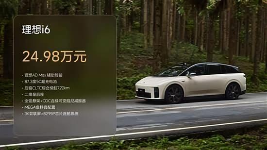 9月26日,理想汽车旗下第二款纯电SUV理想i6正式上市,此次推出1款车型,售价24.98万元。新车定位中大型5座SUV,动力上搭载87.3kWh 5C超充电池,CLTC纯电续航720km。