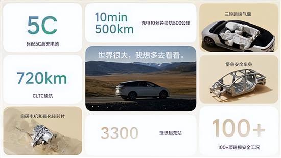动力方面,新车基于800V架构打造,搭载后置单电机,电动机总功率250kW,配备宁德时代磷酸铁锂电池组,CLTC纯电续航720km,充电10分钟可补能500km续航。底盘方面,理想i8拥有全铝悬架、CDC连续可变阻尼减振器、高性能液压衬套。