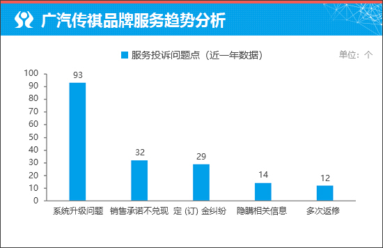 从服务投诉问题点来看,主要集中在“系统升级问题”方面。通过进一步分析可知,投诉问题多来自广汽传祺GS8。