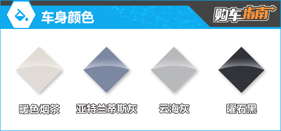 新车全系提供4种车身颜色供消费者选择,其中,亚特兰蒂斯灰实车效果比较个性,适合年轻消费者。