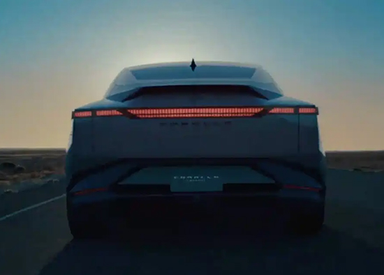 车顶采用全景天幕设计,后视镜修长,或采用无框车门设计,门把手为半隐藏式设计,此外,前翼子板左侧有一个小的开口,不知道是否为充电接口。