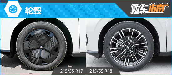 极狐T1标配17英寸轮毂,轮胎规格为215/55 R17。虽然只是钢制轮毂,但是半封闭式设计颇具未来感,黑灰配色再加上纹路装饰,视觉效果个性独特。425 PLUS和425 Max车型升级为18英寸铝合金轮毂,多条辐式设计动感时尚,轮胎规格也随之升级为215/55 R18。