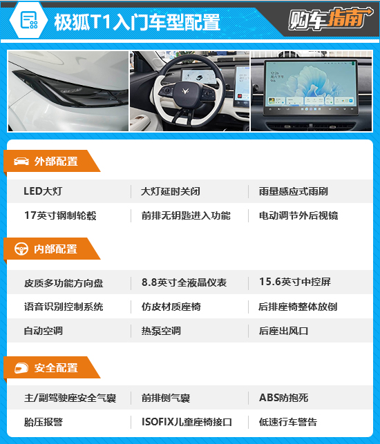 极狐T1的入门车型为320 PRO,售价6.28万元。客观来说,无论是亲民的价格还是较为丰富的配置,都显得很有竞争力,称得上是经济实惠的好选择。之所以不做推荐,主要还是因为320km的CLTC纯电续航里程实在是容易产生里程焦虑。就算只是在城市里通勤代步使用,频繁的充电也会在一定程度上影响使用体验。