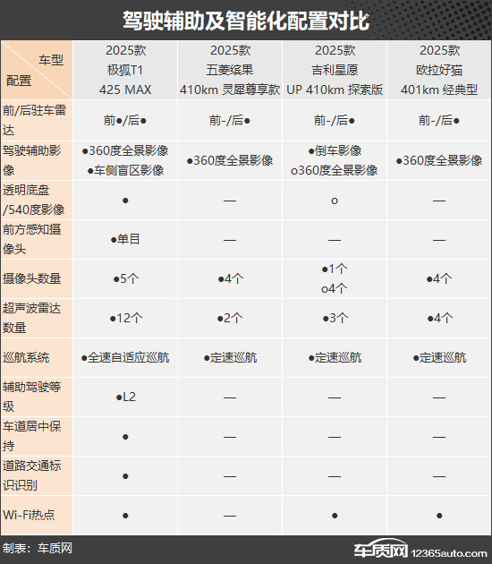驾驶辅助方面,极狐T1继续着自己的领先地位。包括前驻车雷达、车侧盲区影像以及单目前方感知摄像头等,都是另外三款车型不具备的配置。针对本次对比的四款车型,如果对于辅助驾驶有刚需,那么极狐T1就是唯一的选择。