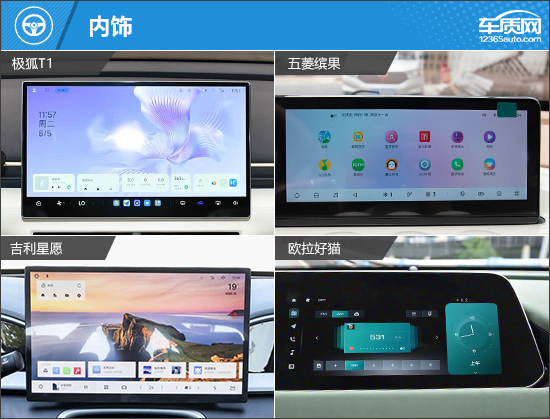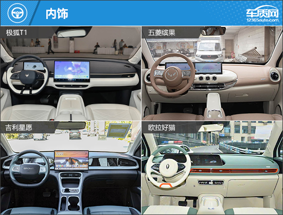 内饰部分,四款车型的设计风格大致分为两类。其中,极狐T1和吉利星愿都采用对称式中控台布局,整体感觉清爽简约。五菱缤果和欧拉好猫均配备双联屏,浅色系配色方案搭配大量曲线以及圆角元素,视觉效果明显更具亲和力。