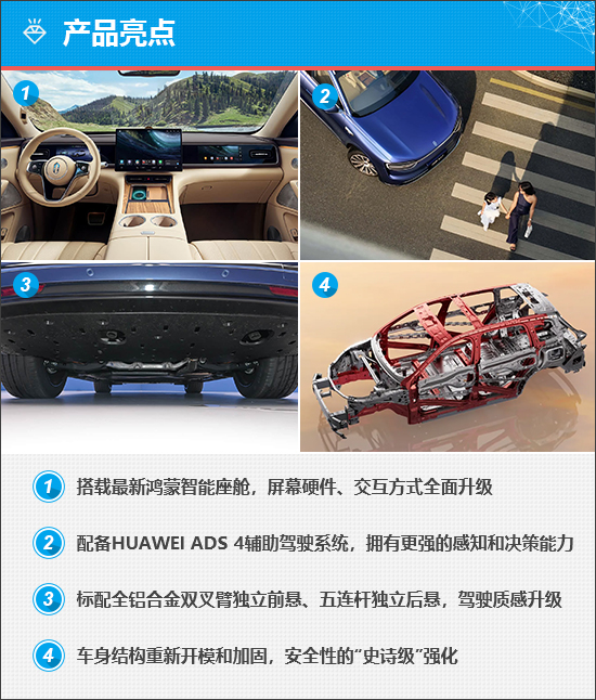 辅助驾驶方面,新车提供两个版本的辅助驾驶系统。其中,高阶版为配备舱外192线激光雷达版本,拥有全维防撞4.0功能,具备全方向、全目标、全天候和全场景等防撞能力。另一个则是华为行业首发的舱内激光雷达视觉辅助驾驶,支持高速和快速路智能驾驶领航辅助,同时支持AES紧急转向辅助、异形障碍物前向AEB等功能。