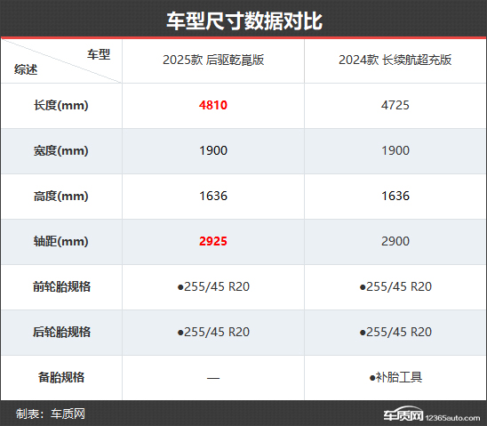 车型尺寸方面,新款车型的长宽高分别为4810mm*1900mm*1636mm,轴距为2925mm,车长和轴距相比老款车型均有加长。轮毂方面,新款车型依旧标配20英寸轮毂,但换装了全新的星芒轮毂造型,视觉效果更为动感。