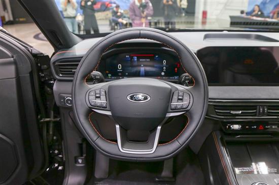 智能配置方面,实拍可见新车搭载12.3英寸全液晶仪表+27英寸中控屏的组合,中控屏支持 4K 分辨率,显示清晰,即使在强光下也能看清内容。车机系统为SYNC+3.0智行互联系统,实拍测试中,语音识别率高达98%,支持“打开空调24℃”“导航至昆仑山景区”等70 +语义交互指令,长途驾驶时无需手动操作,提升安全性;同时系统接入QQ音乐、喜马拉雅等影音资源,配合4个高保真扬声器,但满足日常与长途穿越中的听觉需求已足够。