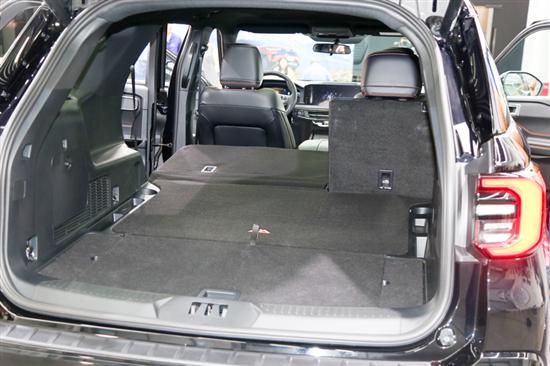储物空间是新车的“杀手锏”。实拍数据显示,常规状态下,后备箱置物板上方容积达 1505L,实拍时可轻松放入2个28寸行李箱+1个20寸登机箱 + 露营帐篷,满足家庭短途出行需求;若将第二排座椅纯平放倒,后备箱容积瞬间扩展至 2487L,实拍时放入雪板(1.8m长)、自行车(拆卸前轮后)、露营桌椅等大件装备,仍有剩余空间,完全适配沙漠、雪原等穿越场景的装备运输需求。